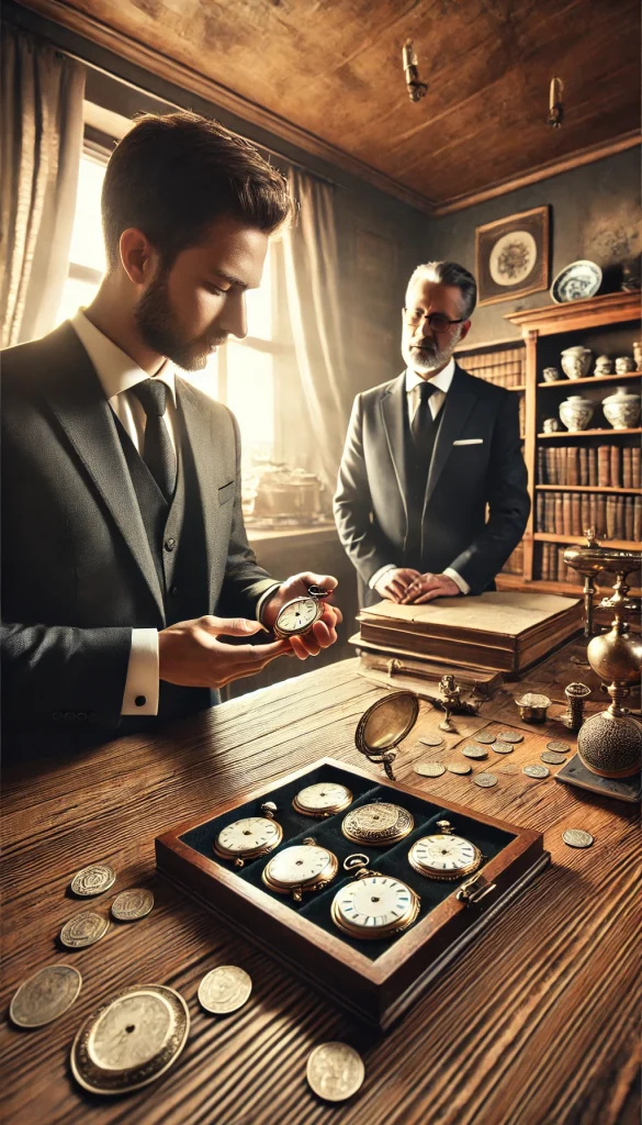 - Horlogerie ancienne : montres à gousset, horloges murales ou de table.